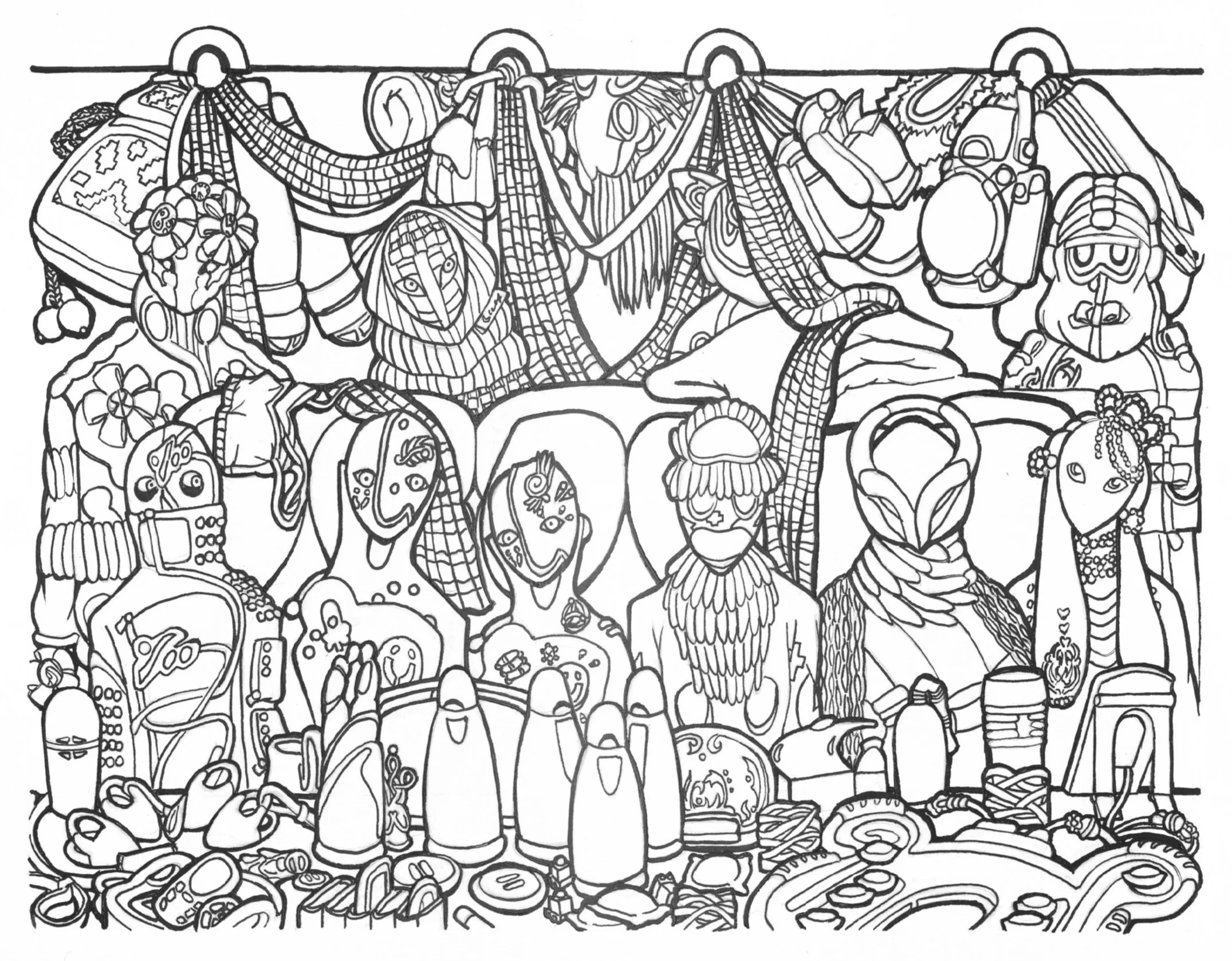 Voidpunk Utopias reimagines identity and culture through a queer and neurodivergent lens. In the spirit of Walidah Imarisah and Adrienne Maree Brown’s “visionary fiction”, this collection of pen and ink drawings invites viewers to inhabit avatars that fall outside the boundaries of prescribed social roles and norms to expand limits of self-perception. It also explores scenes which don’t exist due to power being centralized in a differing set of perceptions and priorities, rather than a lack of material goods or technological advancement, to investigate how imaginary worlds tie into our understanding of what our world can be.