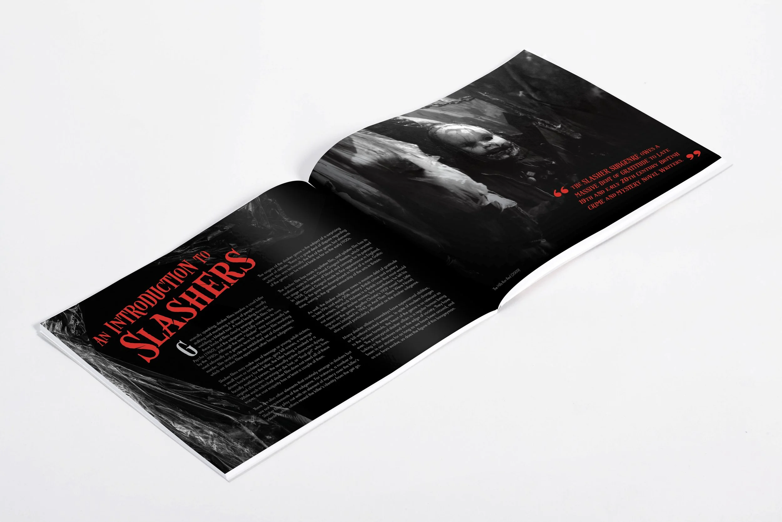 The objective of this speculative project was to design the visual identity of a museum exhibition on the history of slasher villains. I created a logo that could be used for various purposes, as well as an exhibition book that could be purchased by visitors.